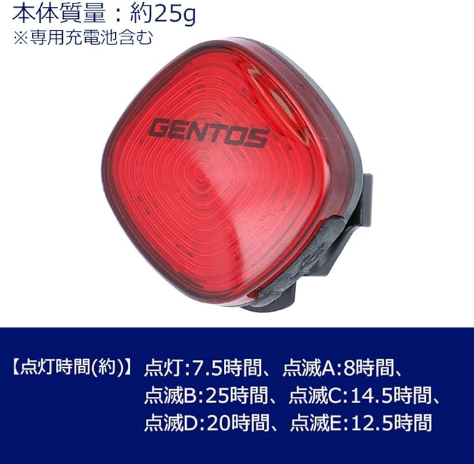 GENTOS(ジェントス) 自転車 リアライト レッド 赤 バイクライト USB充電式 防滴 RL-00R ロードバイク