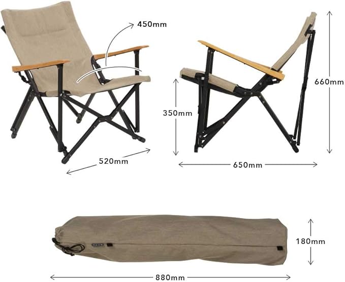 サイズ<br>・使用時:W 520 x D 650 x H 660mm<br> ・収納時:W 180 x D 180 x H 880mm <br>・座面:W 450 x H 350mm