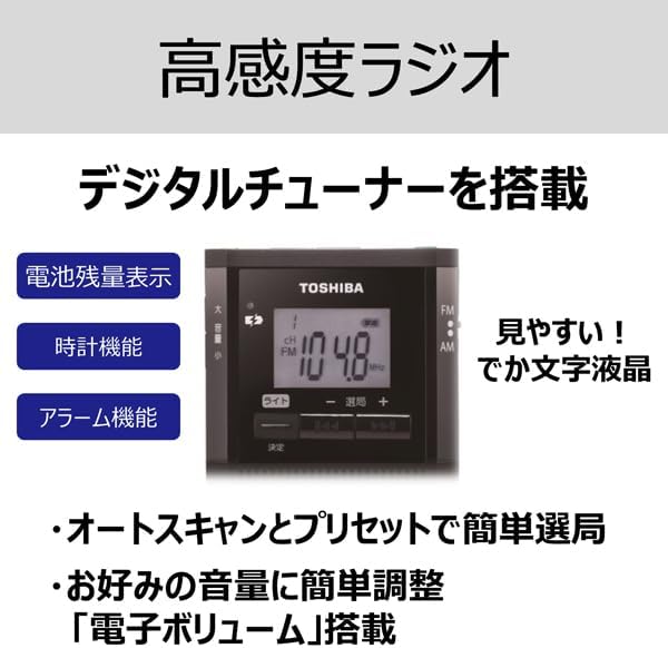 TOSHIBA(東芝) ポケットラジオ TY-SCR5(K) 小型 携帯ラジオ FM/AM スピーカー内蔵 イヤホン対応 高感度 防災グッズ 電池式 軽量 コンパクト 通勤 通学 避難用