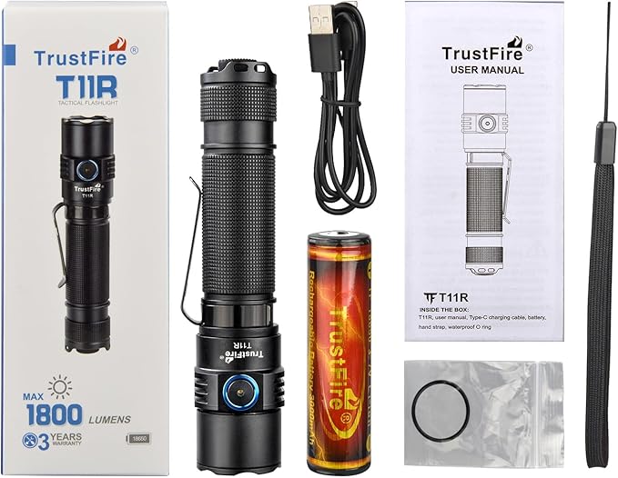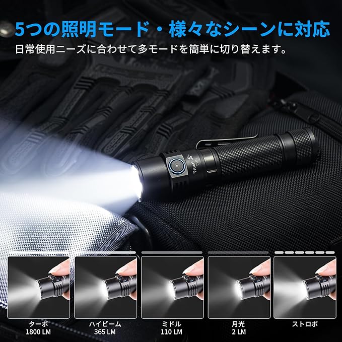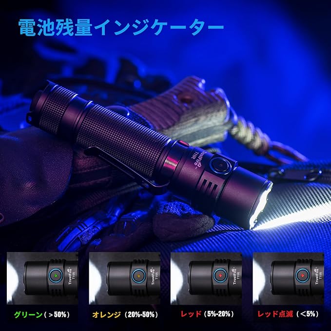 TrustFire T11R led懐中電灯 充電式 小型 強力 1800ルーメン LEDフラッシュライト 軍用 ハンディライト 防災 コンパクト Type-C USB充電式 18650大容量電池 IP68防塵 防水 明るい 残量表示機能 自転車 登山 夜釣り 夜間訓練 作業用 避難対策