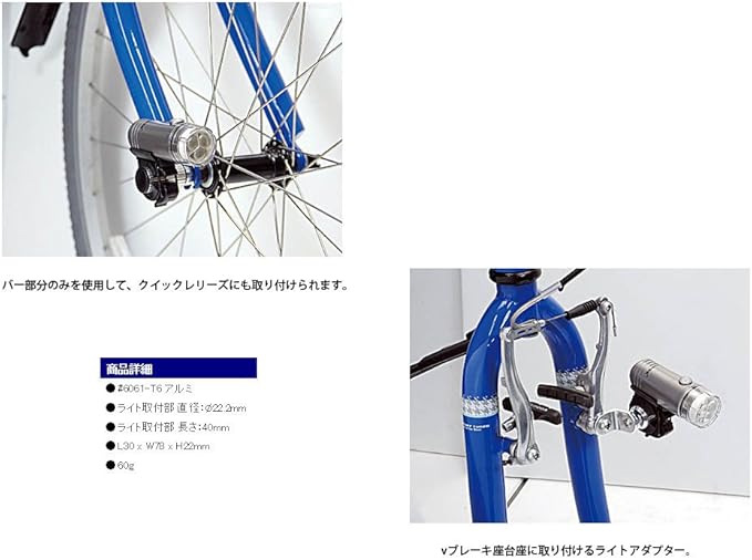 Vブレーキ台座に取り付けるライトアダプター。バー部分のみを使用して、クイックレリーズにも取り付けられます。
