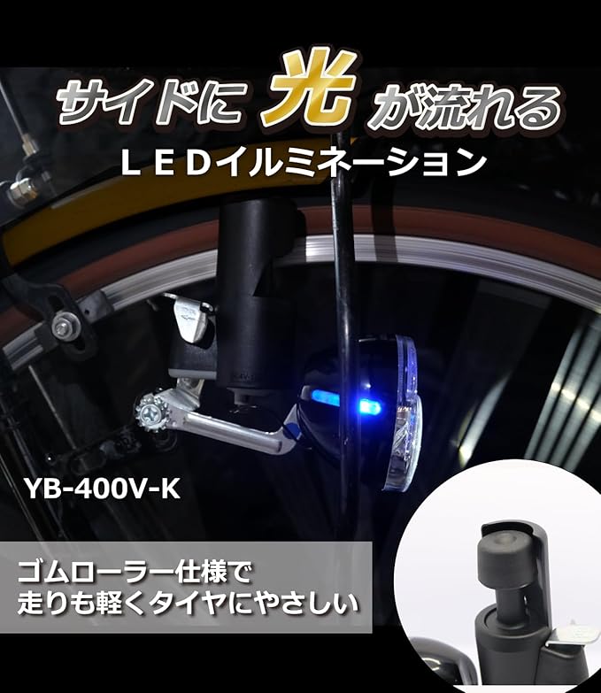 ハピソン(Hapyson) 自転車 ライト LED発電ランプ YB-400V-K カラー:黒(青イルミネーション)