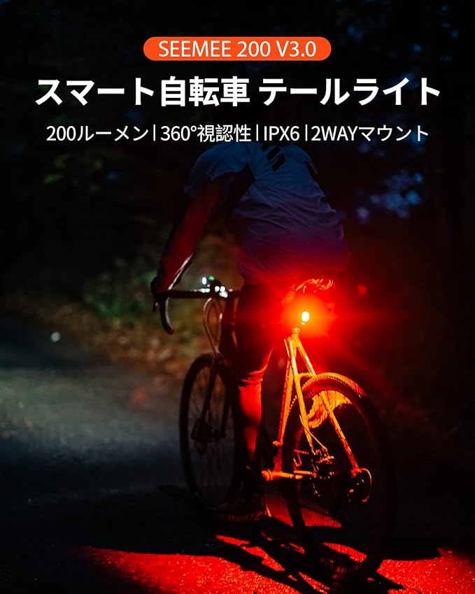 Magicshine 自転車 テールライト SEEMEE 200 V3.0 リアライト 自動消灯 自動点灯 ブレーキ警告機能 光センサー 200 ルーメン IPX6 防水 USB 充電式 高輝度 長時間持つ ロードバイクテールライト 昼夜通用 通勤 通学