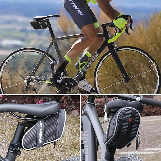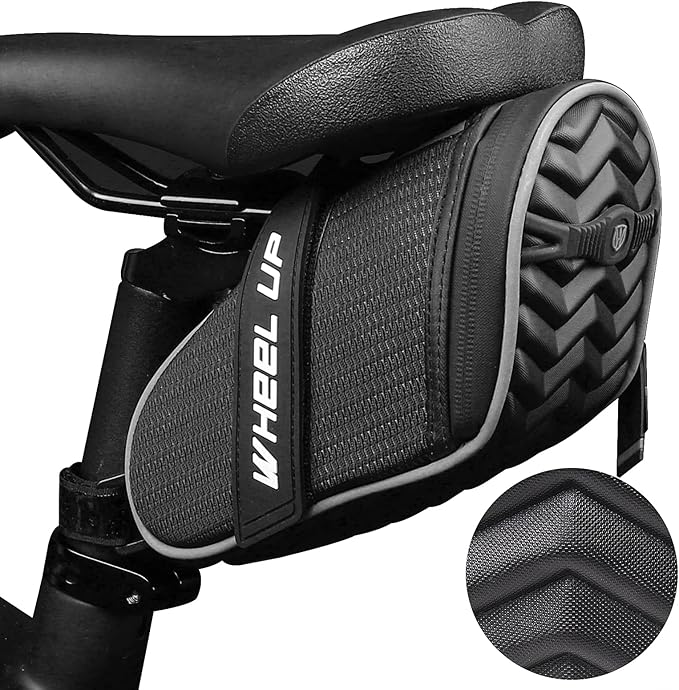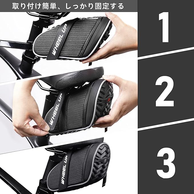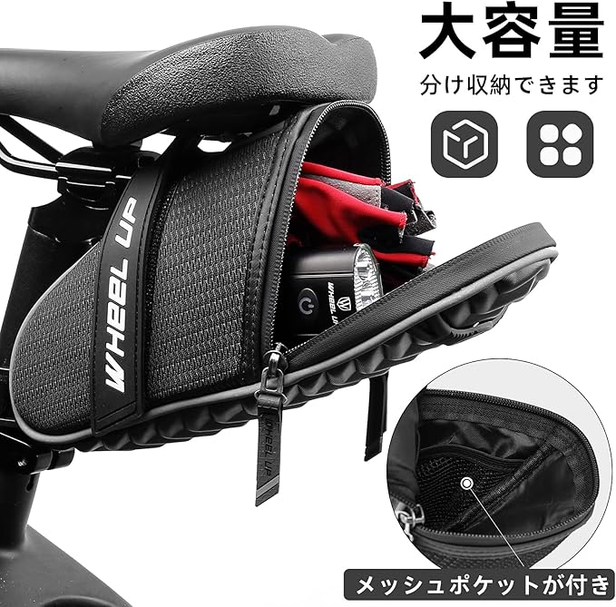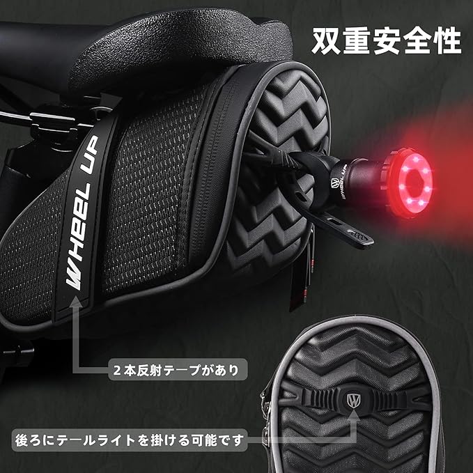 WHEEL UP 自転車サドルバッグ フレームバッグ ベルクロベルト式 バイクシートバッグ 防水 大容量 テールライトハンガー付き(黒)