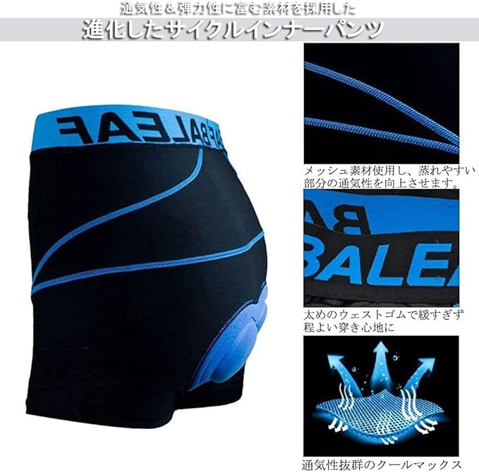 [バリーフ] サイクル インナーパンツ サイクリングパンツ ロードバイク メンズ 3Dゲルパッド 自転車用 クロスバイク レーサーパンツ 衝撃吸収 痛み軽減 伸縮性 吸汗速乾 抗菌防臭 サイクルウェア マウンテンバイク