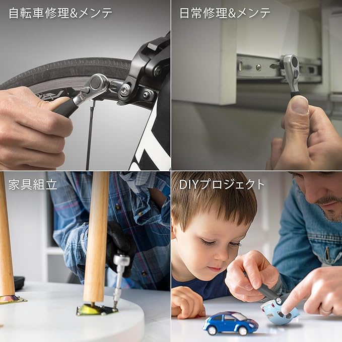 【プロも初心者も大満足】 72歯ミニラチェットレンチ、延長棒、12種類のツールが揃ったフルセット。初心者からプロまで幅広いニーズに応える、頼もしいマルチツールです。