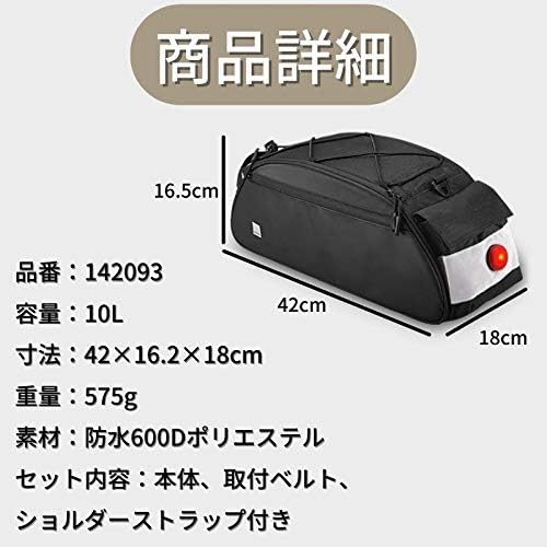 自転車 バッグ リアバッグ シートバッグ バック バイク ロードバイク 大型 大容量 防水 輪行袋 反射テープ (142093 ライト付, 10L)