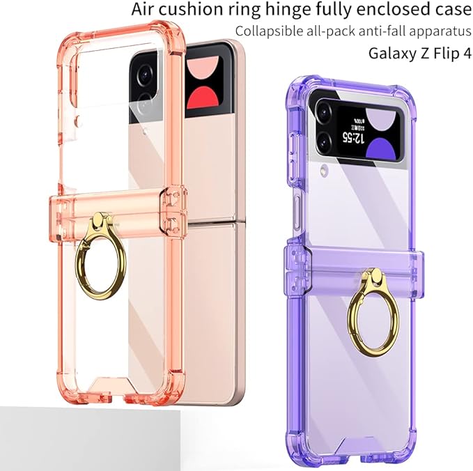 Galaxy Z Flip4 ケース クリア Samsung ギャラクシーZ フリップ 4 / docomo SC-54C / au SCG17 用 カバー リング付き ヒンジ保護 Uovon スマホケース 耐衝撃 スタンド機能 超軽量 超薄型 黄変防止 おしゃれ・クリア