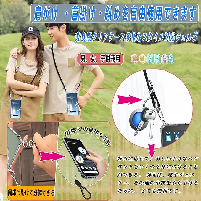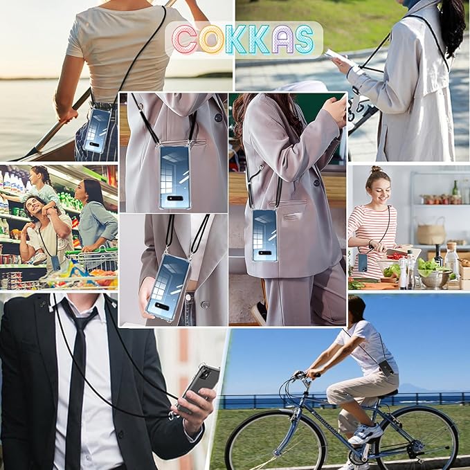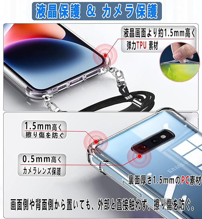 Cokkas Galaxy S10 ケース SC-03L/SCV41 ケース ギャラクシーs10 ケース ショルダー [ストラップ2本付き] 紐付き 肩がけ 首掛け 縄掛け galaxys10 スマホケース ストラップホール付き 薄型 透明 ハード PC+シリコン TPU バンパー 耐衝撃 米軍MIL規格 長さ調整可能 s10カバー(クリア)