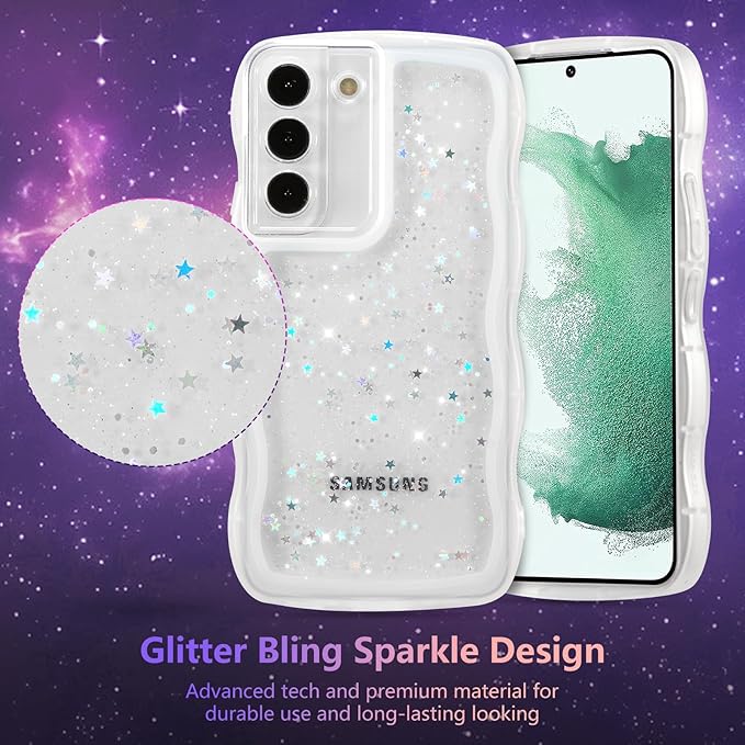 ZTOFERA Samsung Galaxy S22 5G 用波状のケース 透明 クリアケース サムスン ギャラクシー S22 ウェーブケース 可愛い おしゃれ キラキラ 星 スマホケース ソフトTPU スターパターン 軽量 耐衝撃 人気 韓国 S22 ケース 女子 女性 携帯電話カバー (ホワイト)