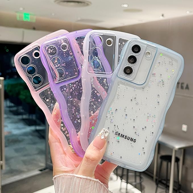 ✨【独特なデザイン】かわいいなグリッタースターデコレーションがあなたの携帯電話をより魅力的にします!波型のフレームが快適なグリップを提供。クリアな背面は、携帯電話本来の美しさを表現しています。 女の子と女性への素敵な贈り物。