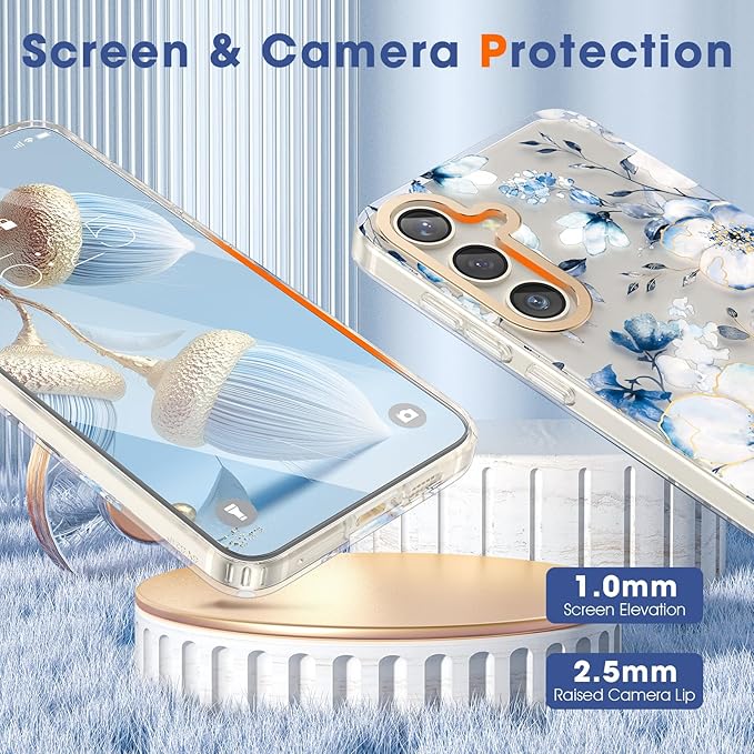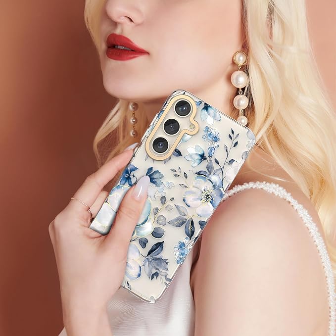 MILPROX Samsung Galaxy S25 ケース 花柄 かわいい クリア 強化ガラスフィルム付き 耐衝撃 ソフト&軽量 耐久性 おしゃれ フラワー 女性人気 6.1インチ