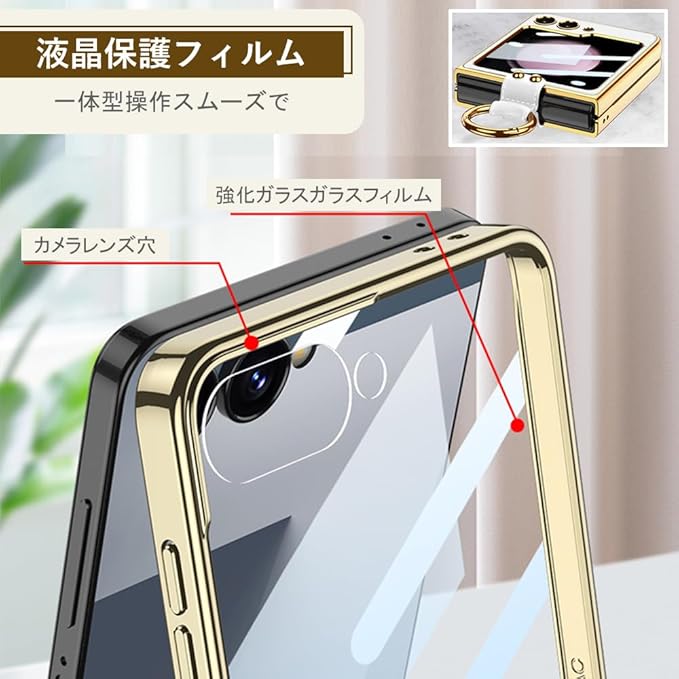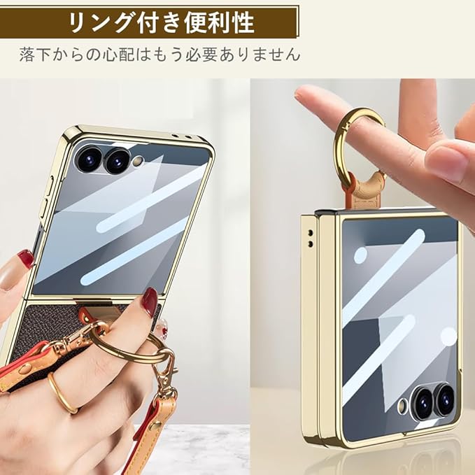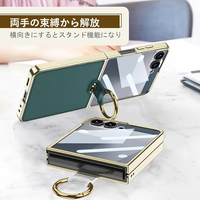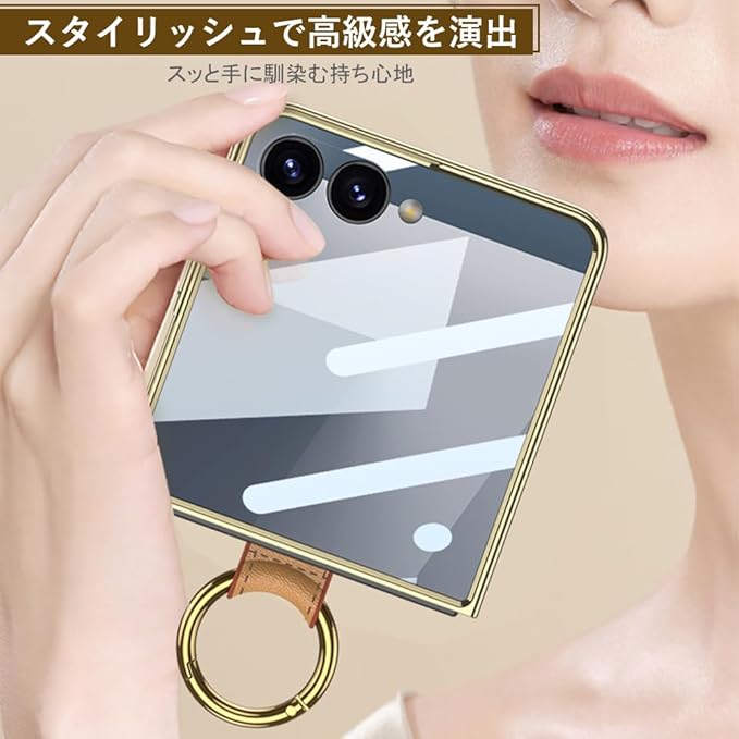 「全面保護」エレガントな電気メッキフレームと柔らかなPUレザーの組み合わせで、外観の美しさと耐久性を兼ね備えました。前面のフチはわずかに高く設計され、日常の擦り傷からGalaxy Z Flip7を保護します。