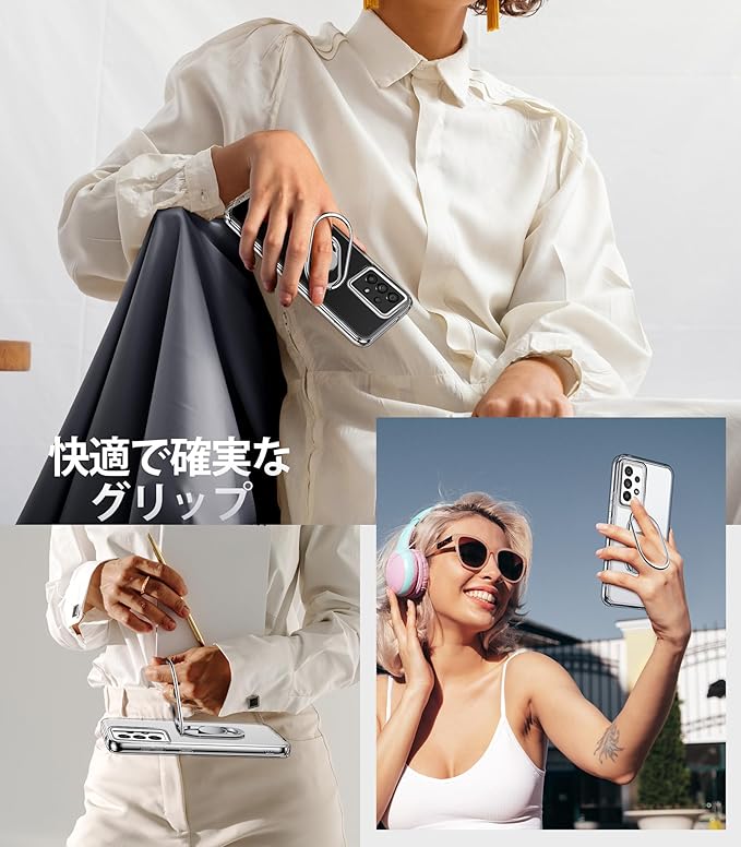 Rockaway Galaxy A52 5G ケース SC-53B SOG05 スマホケース スマホリング スマホグリップ 角度調節可能 折り畳み 耐衝撃 スタンド機能 軽量 落下防止 ギャラクシーA52 カバー - クリア