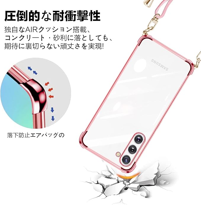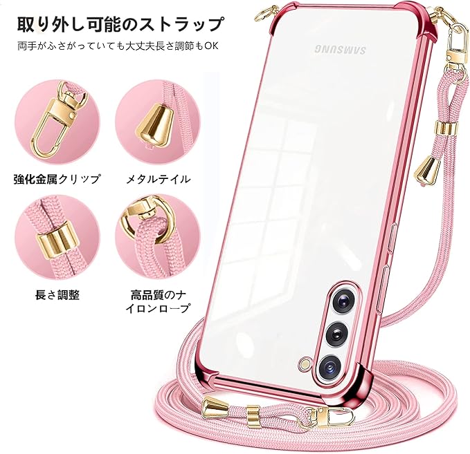 PAILAIMEN galaxy S23 5g ケースクリア ショルダー耐衝撃カバー ストラップ Galaxy docomo SC-51D SCG19 スマホケース galaxyS23 サムスン 肩掛け 斜めかけ ギャラクシーs23 縄掛けケース透明 TPU ストラップ付き 薄型 軽量 紐付き 取り外し可能 携帯ケース(ローズゴールド)