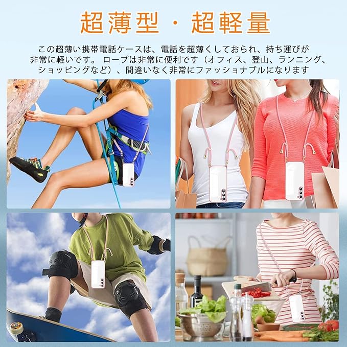 【抜群のフィット&柔軟】 ケースは柔らかいTPU素材を使用し、本体との擦れを防げ、ケースの着脱も簡単にできます。PCやガラス素材よりも柔軟ですが。落下時には衝撃力を分散し、大事なデバイスを全面保護します。また、ケースは型どりを緻密に実施しており、本体に完璧にフィットするとともに、持ったときの圧倒的なフィット感も実現しています。柔らかいナイロンストラップで首を快適に保ち、ストレッチの長さを調整でき、ストラップを取り外して、電話ケースを単独で使用できます。