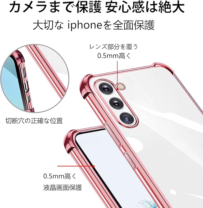 【 高い透明度 】 ケースは特別に開発されたハイテクTPU素材で作られています。 透明度が高く、本体の鮮やかな色をそのまま映し出すことができ、Galaxy S23/SC-51D SCG19 のオリジナルのカラーを損ねません。ケースの端はダイヤモンドカットプロセスを施すことでより洗練された美しい外観となっています。ケースは、型どりを緻密に実施しており、Galaxy S23を保護しているのです。これは Galaxy S23/SC-51D SCG19 の Qiワイヤレス充電 と 指紋認証 を完全にサポートします。