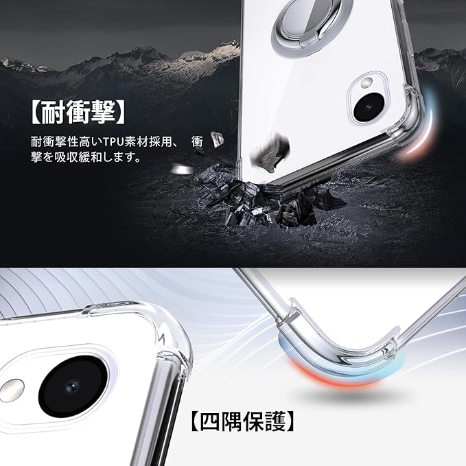 【リング付き&スタンド機能】リングは360度回転可能で、180度の角度調節も可能です。ケースを横置きにするとスタンド機能になり、持たずに動画鑑賞などを楽しむことができます。指をリングに通して一本指で持つことで、片手で携帯電話を操作でき、落下を防止します。