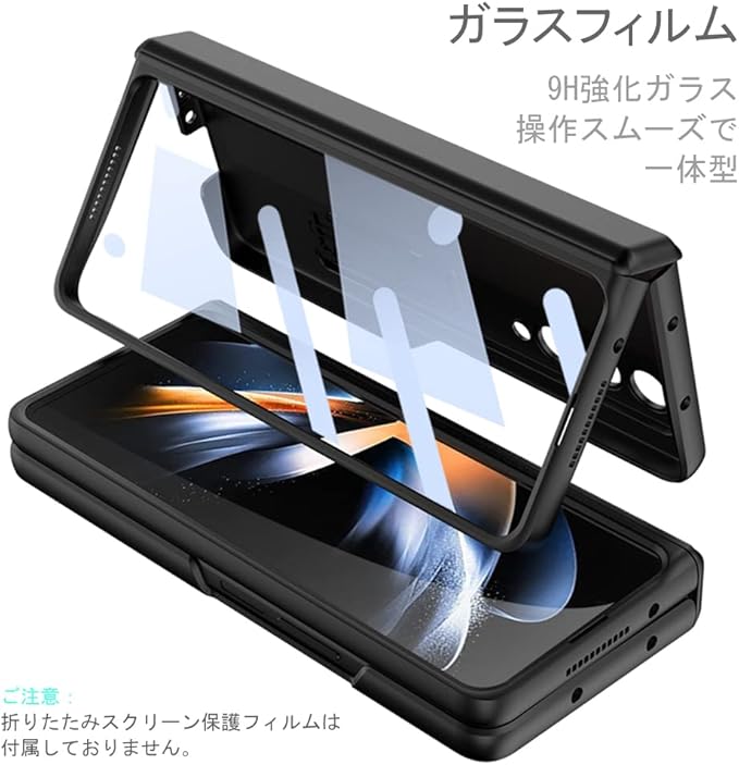「対応機種」Samsung Galaxy Z Fold 4 5G「7.6インチ」専用 ガラスフィルム 一体型 ケース。※ご購入の機種とカラーを確認してから、お買い上げてください。