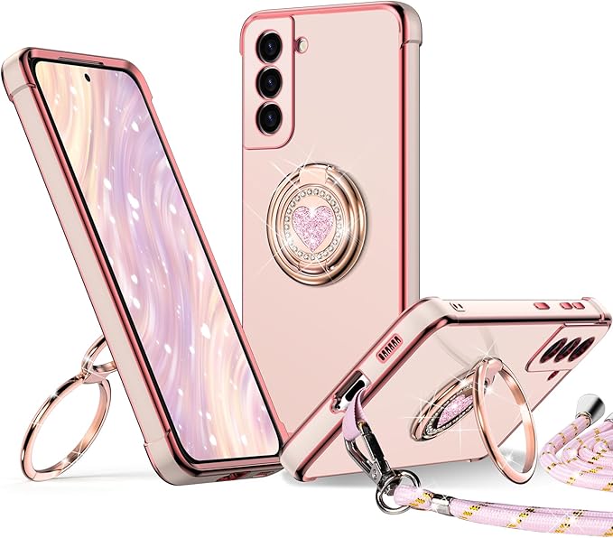 Rockaway Galaxy S22 用 ケース SC-51C SCG13 ケース ダブルリング付き ショルダー ストラップ付き 耐衝撃 薄型 軽量 紐付き 肩掛け 斜めかけ かわいい 女の子 おしゃれ スマホケース ギャラクシーS22 カバー - ピンク
