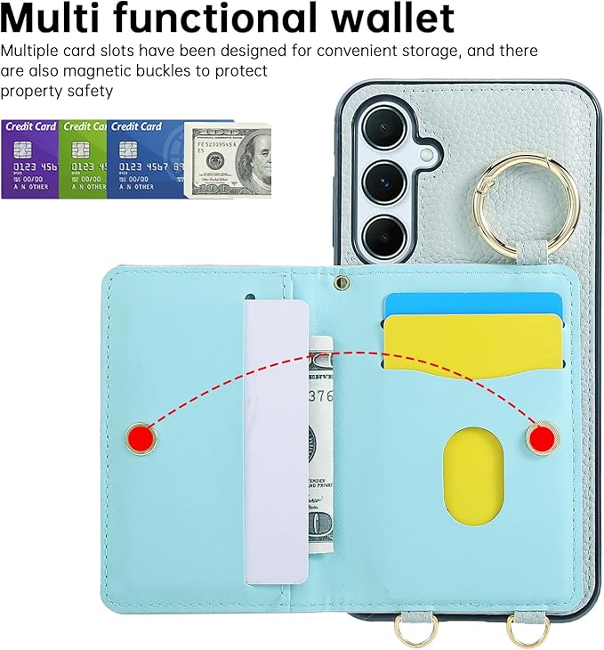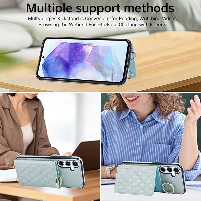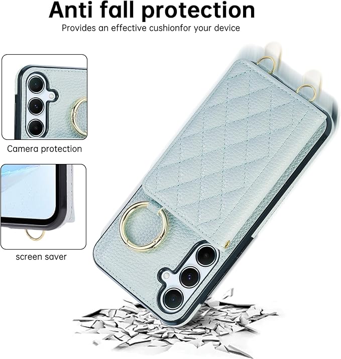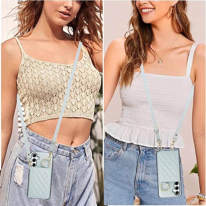 Gedurya Galaxy S25 / S24 ケース 手帳型 背面カード収納 ショルダー ギャラクシーs25 用 背面ケース 肩掛け Galaxy S25 スマホケース 首掛け 斜め掛け ギャラクシーs24 携帯カバー 財布付き スタンド機能 マグネット式 チェック柄 リング付き (ブルー)