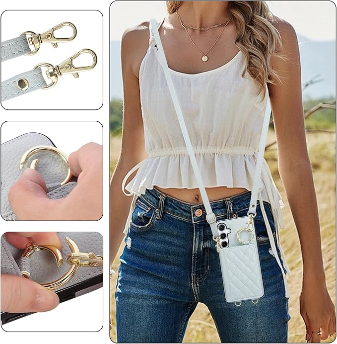 【便利なストラップ付き】ショルダーストラップは調節可能で、クロスボディにも肩掛けにもできる。ショルダーストラップは装飾的であるだけでなく、使用中のスマートフォンの落下を防ぎます、デイリーユース、お出かけ、ショッピングに最適です。