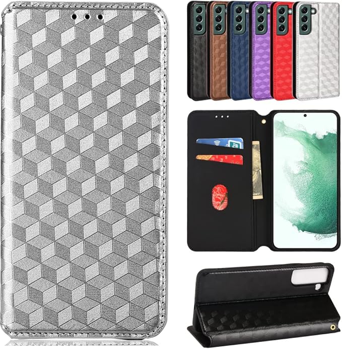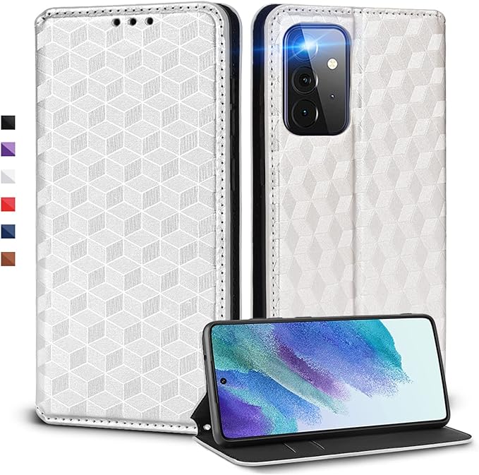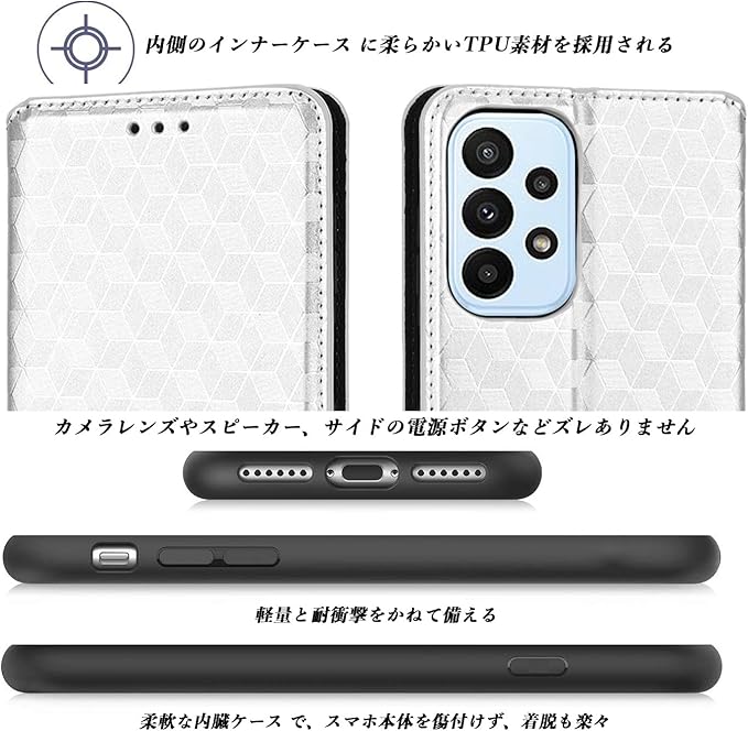 UnivoColors Galaxy A53 5G (SCG15) 手帳型ケース 高級合皮 カード収納 マグネット開閉 スタンド機能 ストラップホール付き TPUソフトバンパー 全面保護 カメラ保護 衝撃吸収 ビジネス おしゃれ カバー(シルバー) N