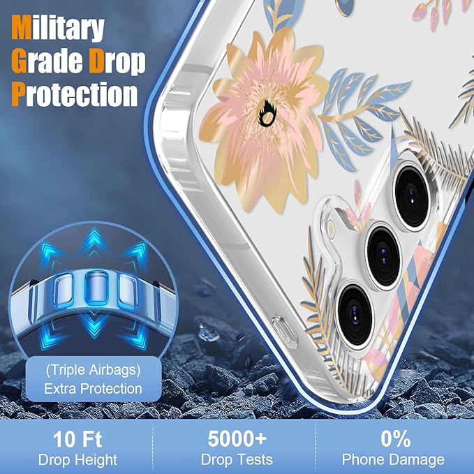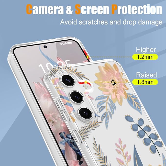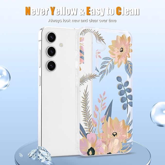 Pepmune Galaxy S24 FE ケース クリア 透明 可愛い 花柄 おしゃれ フィット感 花 薄型 軽量 韓国 耐衝撃 落下防止 ストラップホール付き スマホケース 保護 カバー (大きな花)