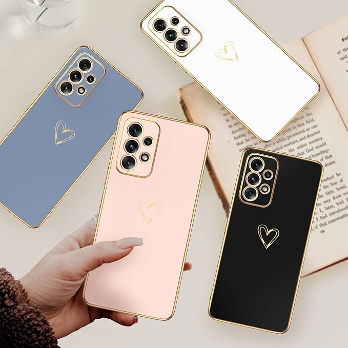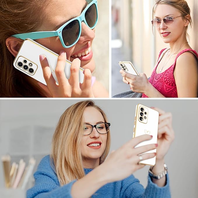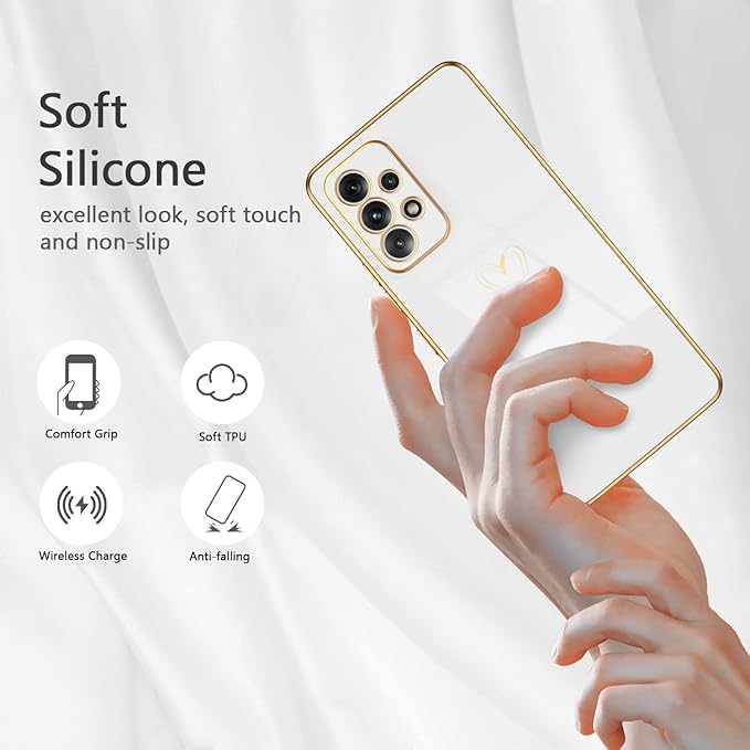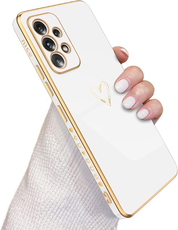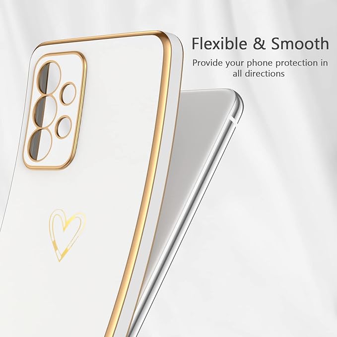 QLTYPRI Samsung Galaxy A53 5G ケース SC-53C/SCG15 ケース かわいい メッキラブハートソフト TPU カバー 女性 人気 軽量 スマホケース レンズ保護 落下防止 カバー Qi ワイヤレス充電対応 携帯電話ケースギャラクシーA53用カバー - ホワイト