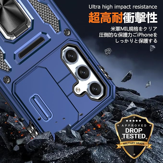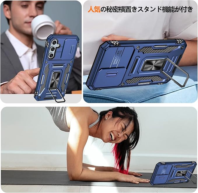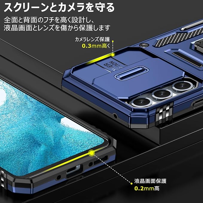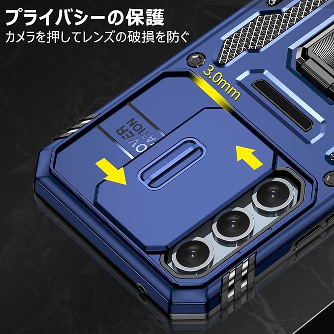 Galaxy S23 FE 用 ケース リング付き 衝撃吸収 耐衝撃 スタンド機能 米軍MIL規格 ギャラクシーs23 fe 用ケース 全面保護 360 回転 滑り落ちにくい 人気 おしゃれ 携帯カバー 青 WY95-104
