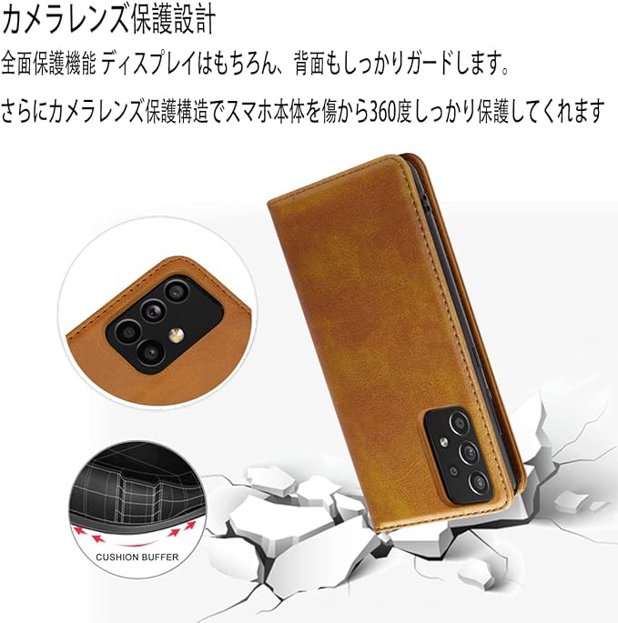 【多機能】:①[スタンド機能が付いて]:横向いて斜めに立てて、お好きな角度を調整できます。②[360度保護]:内蔵マグレット機能付きの手帳型カバーで、大切なディスプレイへのキズ、汚れ、衝撃も保護できます。③[マグネット開閉式]:携帯ケースの左側の裏に内蔵があり、両面カバーをしっかり固定することができます。