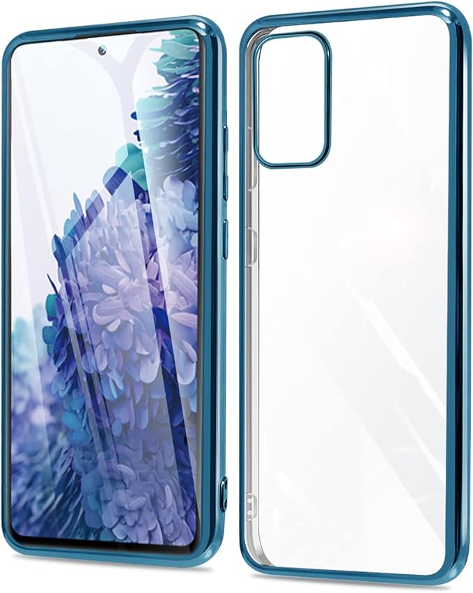 Galaxy S20 ケース クリア ギャラクシーs20 SC-51A/SCG01 カバー 透明 耐衝撃 軽量 薄型 tpu 背面クリア メッキ加工 スマホケース ソフト ストラップホール付き ワイヤレス充電対応(galaxyS20, ネイビーブルー)