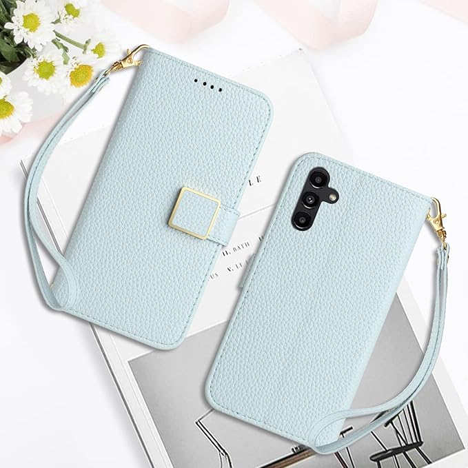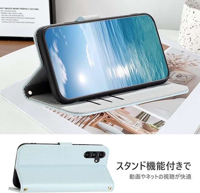 Deeaar Galaxy A54 5G ケース手帳型 人気 ケース ギャラクシー a54 5g 財布型 カバー カードポケット付き 軽量 薄型 全面保護 docomo SC-53D au SCG21 カード収納 スタンド機能 横置きスタンド機能 高級PUレザー 上質な手触り 擦り傷防止 ケース (Galaxy A54 5G SC-53D SCG21 6.4 inch対応) - アイスブルー