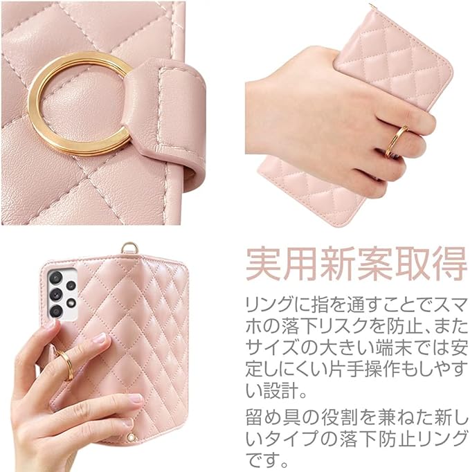 【高級素材採用、のキルティング技法で作られており】本商品は最高級のキルティング技法で作られており、丁寧に縫われて、紋様も十分おしゃれです。肌触りにも優れています 耐熱性と柔軟性を誇る上質なPUレザーで作られた上、素材の表面に手触りは非常に良いフィット感を与えられ、落ち着いてる色、シンプルなデザインこそ、女性の高級感を引き立たせる;滑りにくく、落下時の衝撃を効率よく吸収するようにケースの各コーナー内側が設計されています。さらにカメラレンズ保護構造でスマホ本体を傷から360度しっかり保護してくれます。