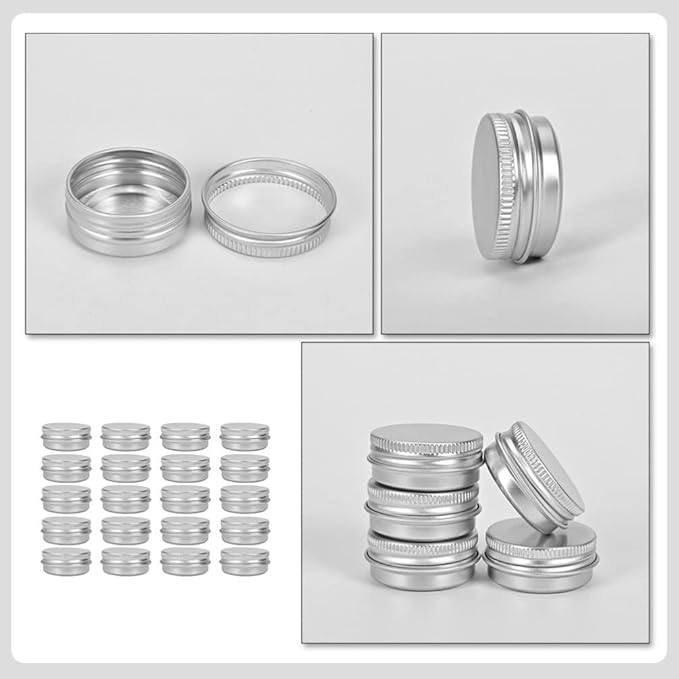 BESTOYARD クリーム ケース アルミ 缶 30g 小物入れ クリーム容器 詰め替え容器 小分け容器 化粧品用 アルミネジキャップ缶 小分け 化粧品 収納 保存 ネイルパーツ シルバー 30個セット