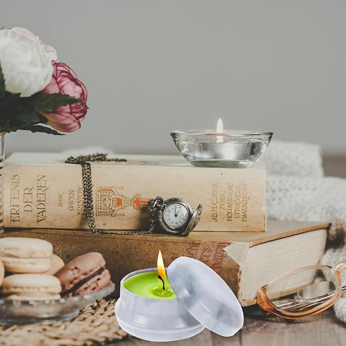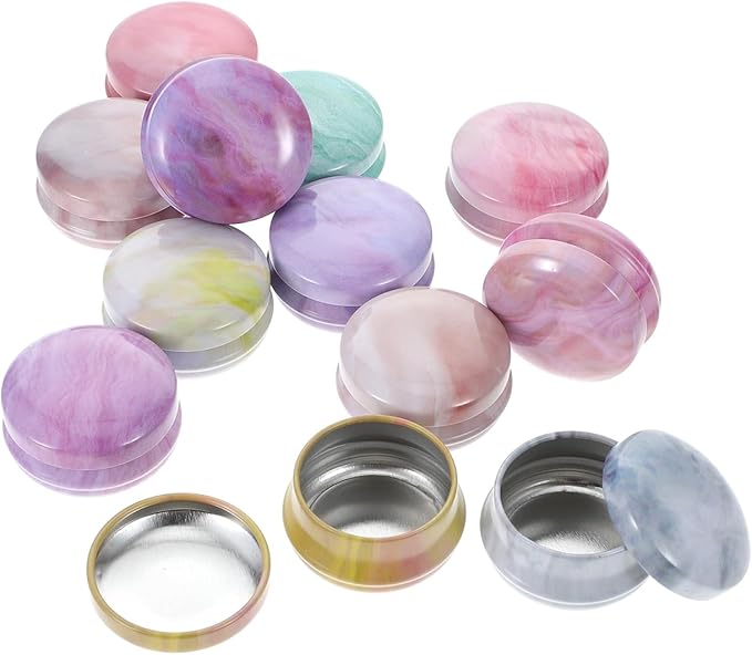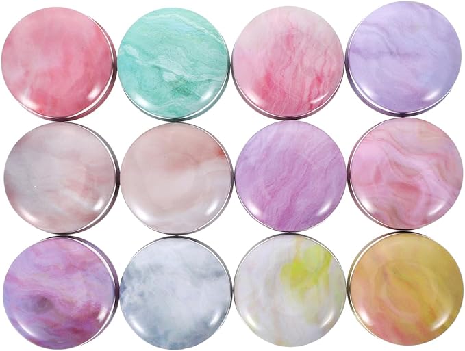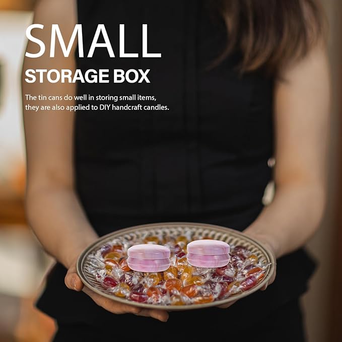 EXCEART 収納ケース キャンドル容器 ブリキ缶 蓋付き 金属缶 貯蔵缶 ミニ 携帯用 丸い 化粧品 丸缶 小さい缶ケース DIYキャンドル作り 旅行 12個入