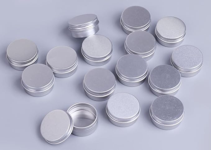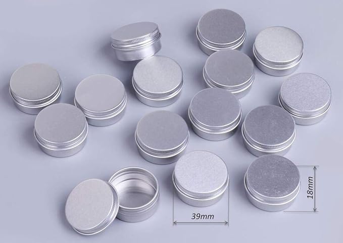 使いやすく清潔な容器です。 スクリュー蓋付きアルミ容器で、固体、半固体、その他のワックスなども入れられます。リップクリーム、ネイルバーム、ネイルアート、ミニパウダー入れにしてもいいですね。