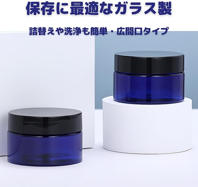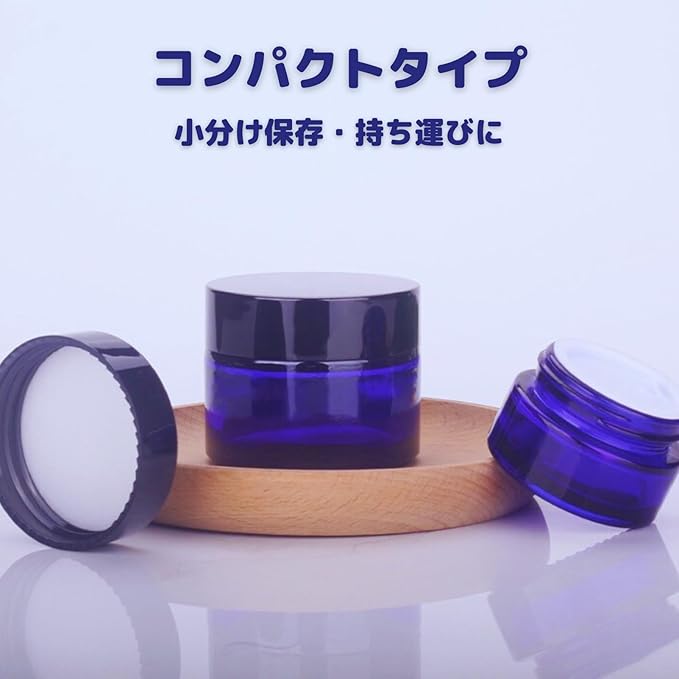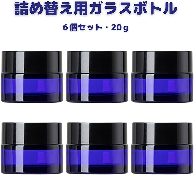 Riblind クリーム容器 20g 遮光ガラス製 詰め替え用 小分けボトル コスメ容器 アロマ バーム保存用 内蓋付き 携帯に便利 ブルー 6個セット