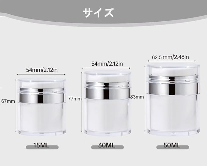DIFEIUKI エアレスポンプジャー 3個入り プレス式 クリームジャー クリームケース 漏れ防止 汚染防止 遮光 おしゃれ 詰め替えボルト クリーム/ローション/ファンデーション/シャンプー用 出張 旅行用品(15ml/30ml/50ml)