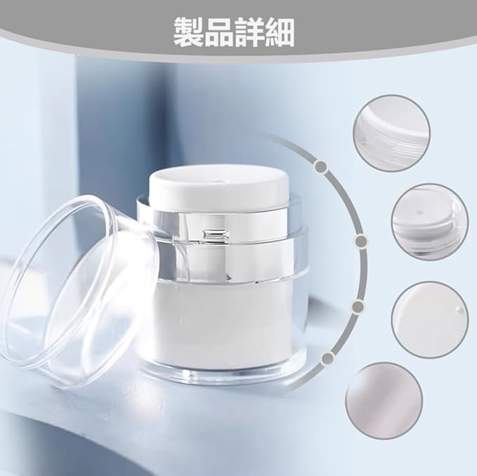 【使いやすい】まず瓶の中に目的の製品を入れて、真空状態を作る必要があります。ポンプを押すと、容器の底にあるピストンが、製品を上部に押し上げます。ポンプを押すだけでクリームが出てき、指が汚れることもありません。