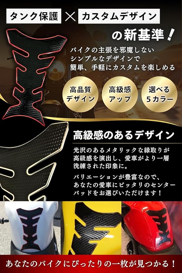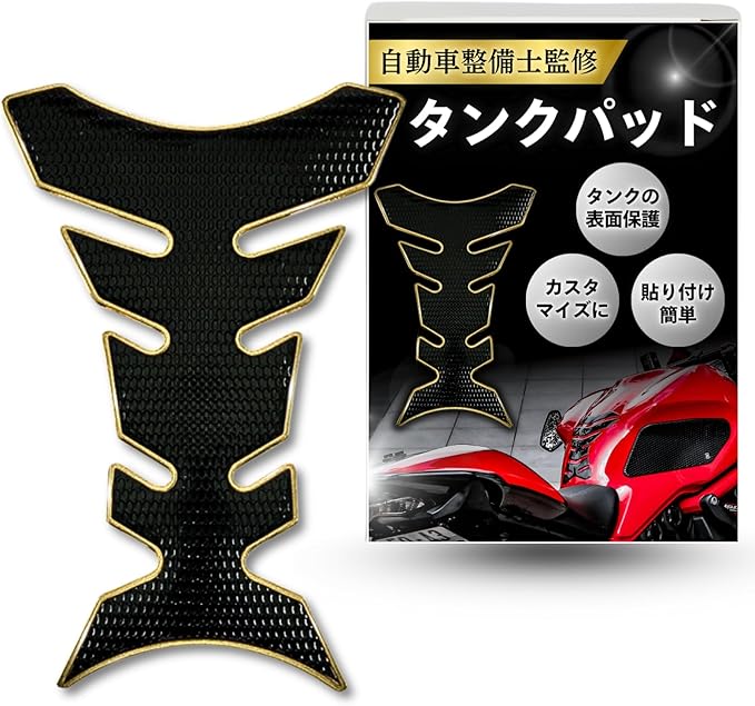 バイク タンクパッド 【選べる2タイプ】【5色】 傷防止 プロテクター 高密着 ドレスアップ シール 汎用 簡単装着 センターパッド (ゴールド, 205mm 135mm(1ピース))