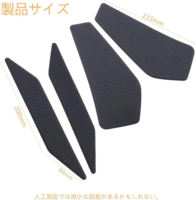 セット内容:ニーグリップパッド 1ペア、接着剤(両面テープ)とパッド。高品質なゴム素材は、日光/風雨に耐えるだけでなく、寒冷時にも柔軟性を保ちます。乗り物のコントロール性を向上させ、バイクとライダーの接触を増加させます。