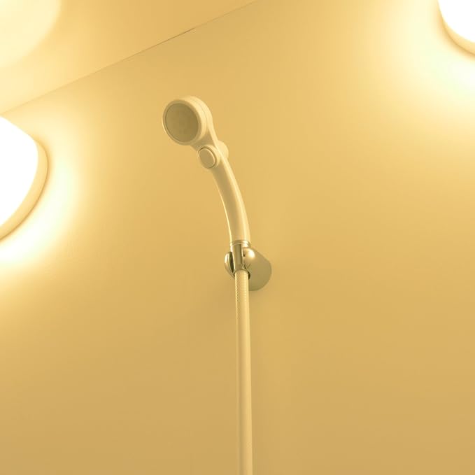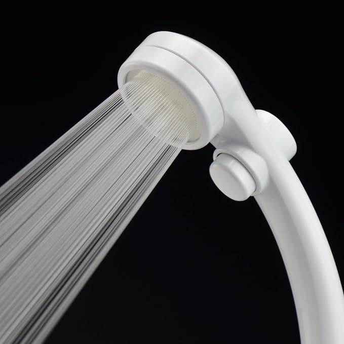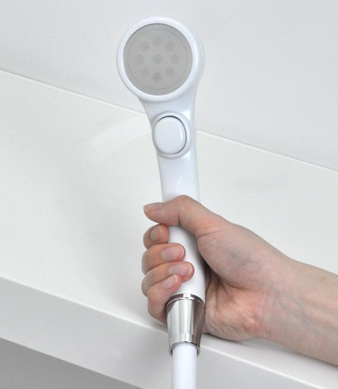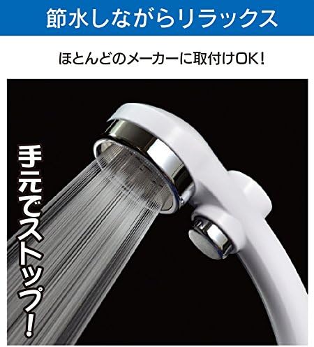 ・リラックス完全止水タイプ(白ボタン・白リング)、金属ナットシャワーホース(ホワイト)、調圧弁(グレー)、アダプターがセットになっている