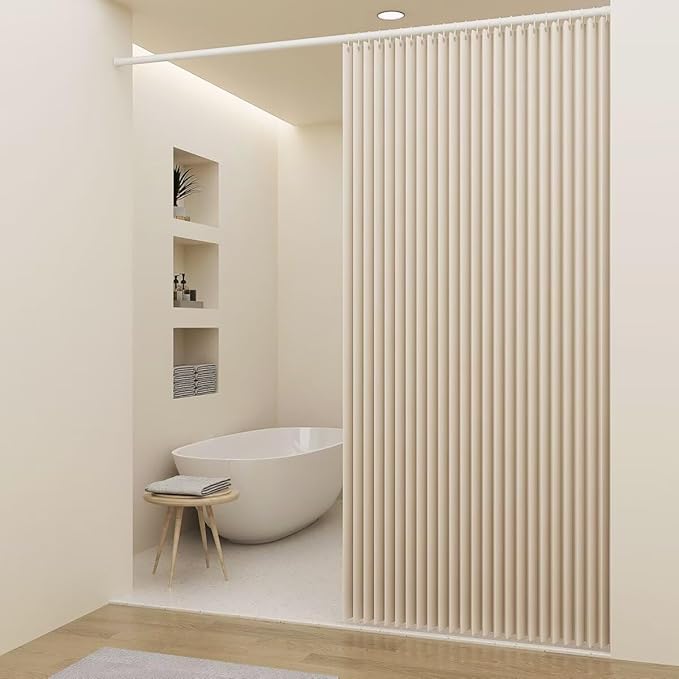 OSONA シャワーカーテン 200cm丈 100cm幅 防水 防カビ 間仕切りカーテン 防寒 保温おしゃれ 浴室カーテン リング付属 形状記憶加工 無地 北欧 目隠し用 厚手 取り付け簡単 風呂カーテン バス用品 バスルーム カーテン シンプル ベージュ