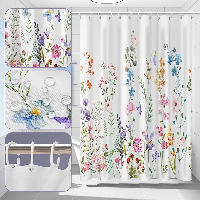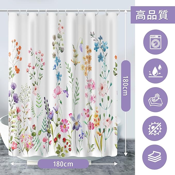 【優れた品質】シャワーカーテンはポリエステル製で柔らかくて手触りよく、耐久性があり軽量な素材です。美しい花柄で、自然に近い気があります