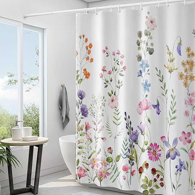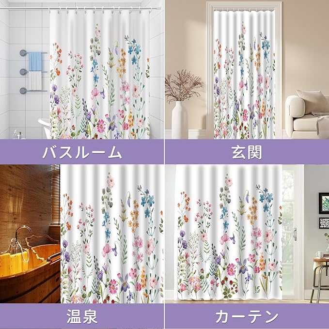 【花柄デザイン】このカーテンは、自然に近い花柄系プリントが施されており、バスルームを明るく自然に近い気があります。シャワーカーテンとしてだけでなく、部屋の仕切りや更衣室、棚の目隠しにもお使いいただけます