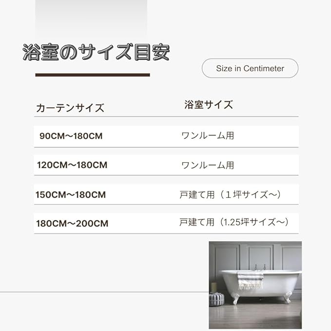 【防水・防カビ】 防水、防塵、防カビ加工のお洒落なシャワーカーテン、バスルームの雰囲気が非常に良くなります。シャワーカーテンをすることにより、シャワーの水滴を飛び散らないようにすることはもちろん、保温効果もあります。