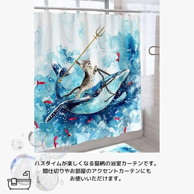シャワーカーテン 猫 防水 防カビ 洗える 目隠し 可愛い ユニットバス お風呂カーテン バス用品 海 小窓 アニマル (90cm 180cm)