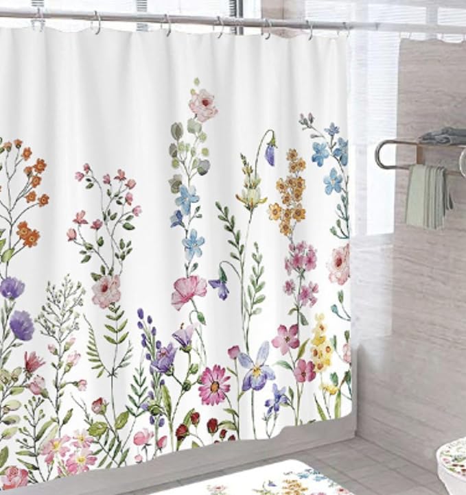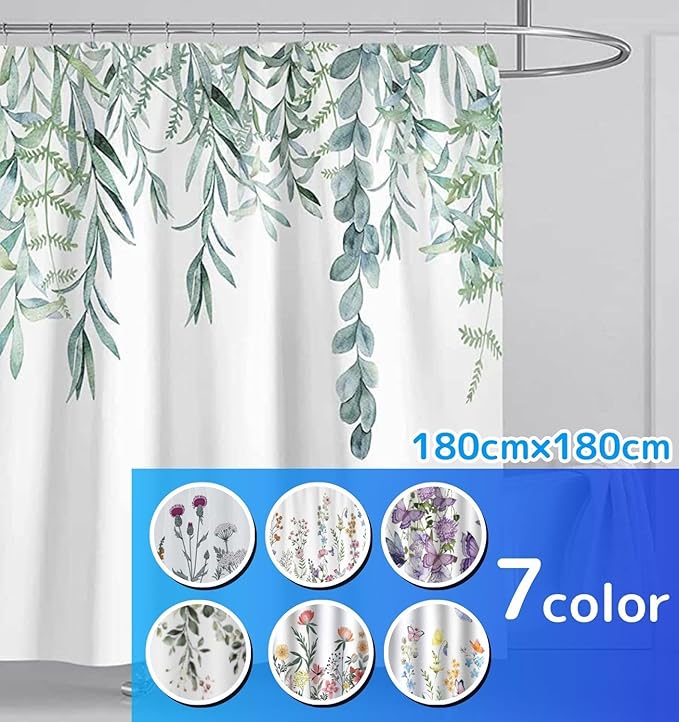 花柄シャワーカーテン リーフ柄シャワーカーテン 180cm丈 バスカーテン 浴室カーテン 目隠し (花柄①)