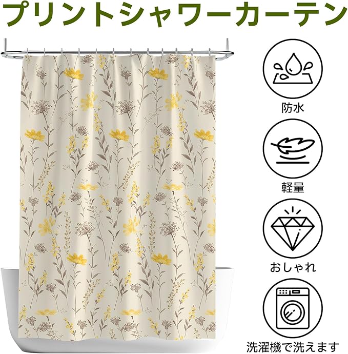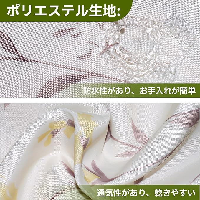[高品質のポリエステル素材、優れた防水性能]: このバスカーテンは高品質のポリエステル素材を使用しており、優れた防水性能を備えています。これにより、浴室が濡れることを防ぎ、常に乾燥状態を保つことができます。また、この素材は耐久性があり、清掃も簡単です。